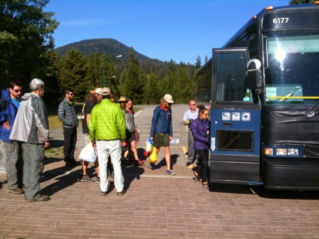 Hikers loading the bus to Vancouver.